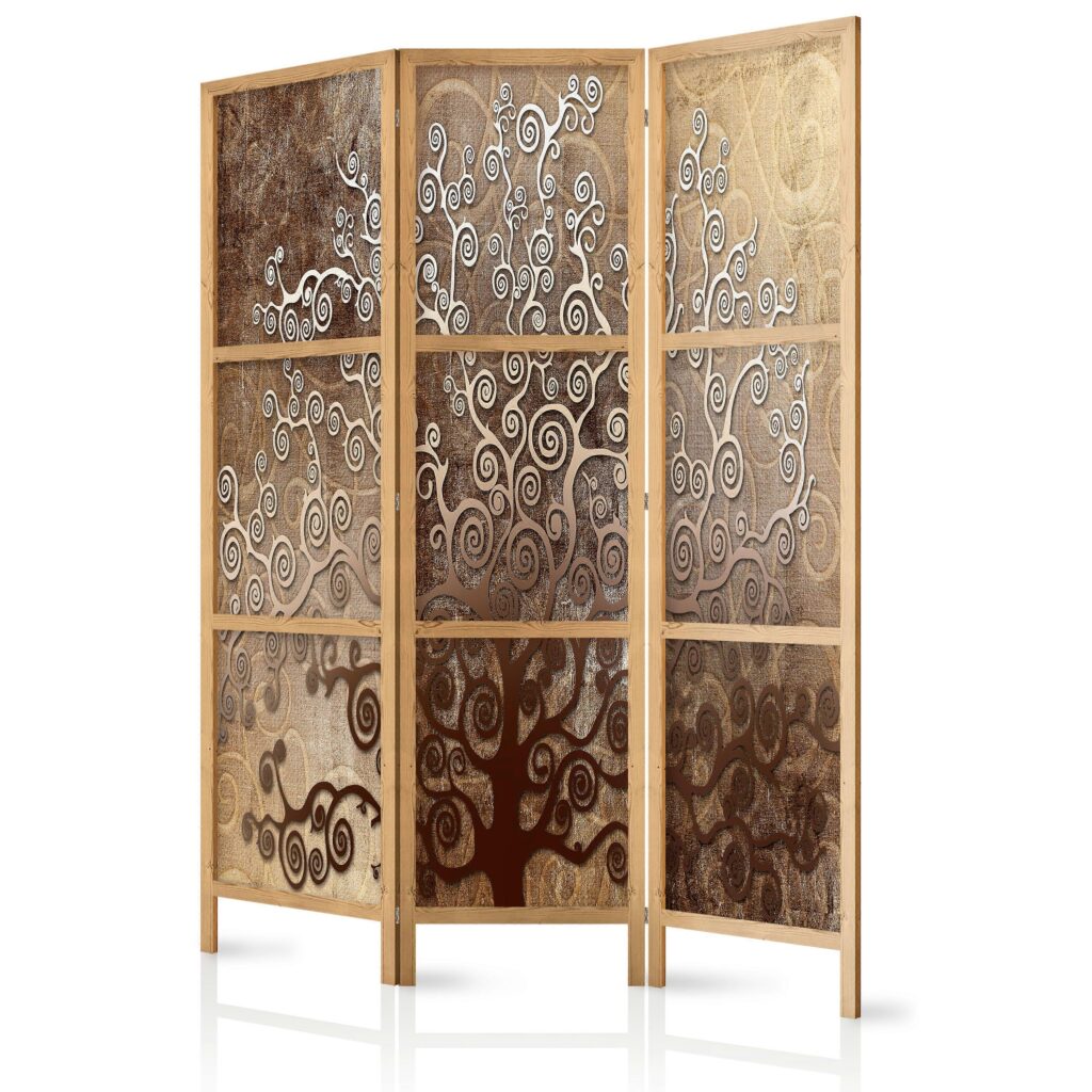 JAPANISCHER RAUMTEILER – GOLDENE SCHNÖRKEL I eignet sich perfekt für Meditationsecken, Lesebereiche oder zur Abtrennung von Arbeits- und Wohnbereichen. Er besticht durch sein minimalistisches, japanisch inspiriertes Design mit einem robusten Holzrahmen und faltbaren Paneelen. Die hochwertig bedruckten Oberflächen sorgen für Langlebigkeit und verleihen jedem Raum Eleganz und Wärme.