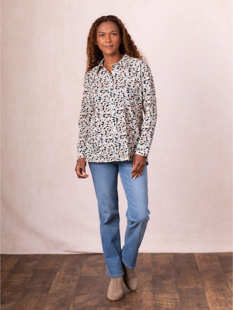 - Classic Silhouette: Collar, Button front and full-length sleeves provide structure.
