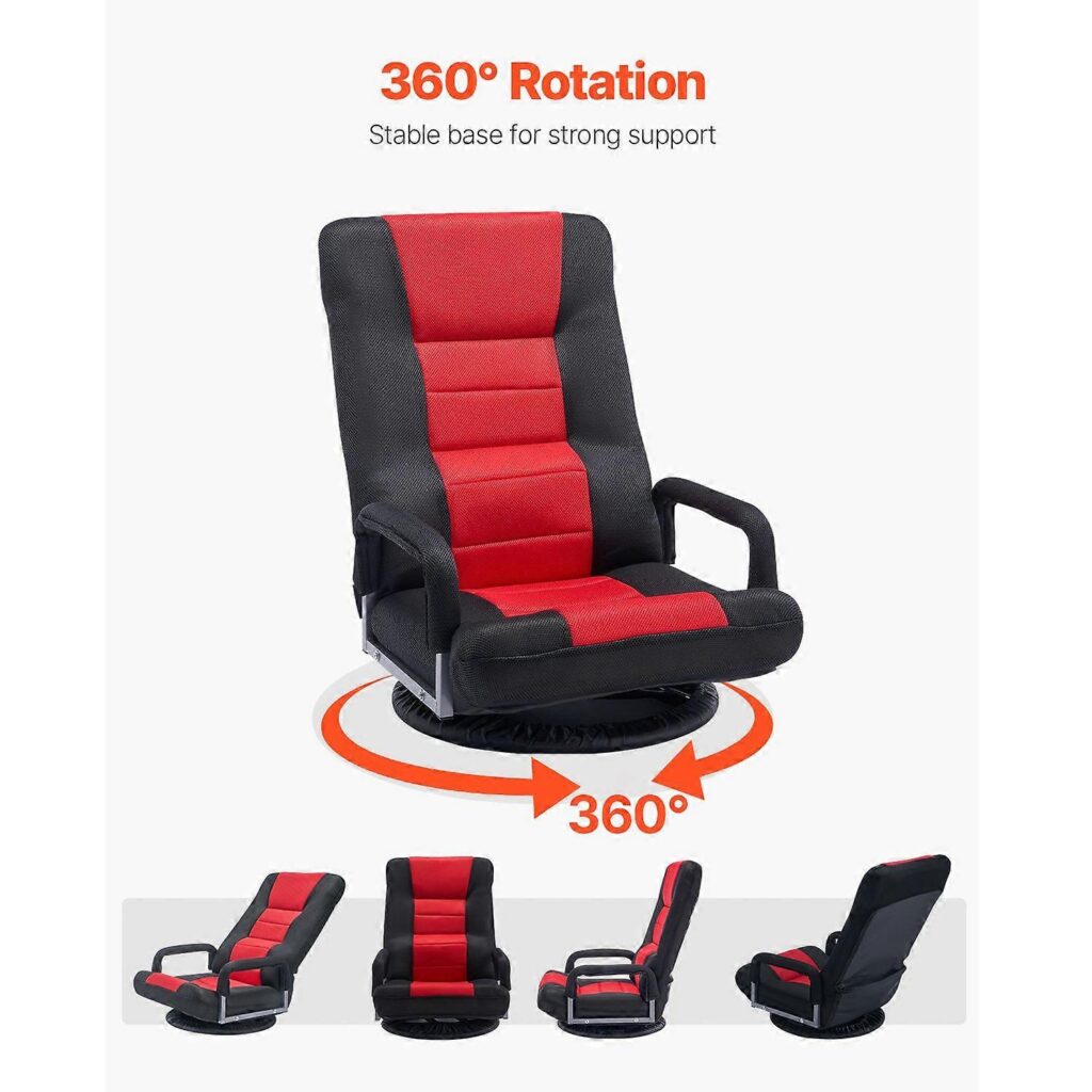 This versatil seat chair is constructed on a stable metallic frame that ensures long-term durability and stability. The 360-degree swivel base makes movement painless, no longer the need to get up and switch the direction you are sitting. Its design is also portable and can be folded to be stored in the easiest way possible and is therefore ideal in small living spaces, bedrooms and dormitories. Its adventurous color scheme of ré-and-black gives a room a contemporary, sporty approach. Outside of gaming, it can be used perfectly well as a study session, work-from-home set-up or even movié marathons.