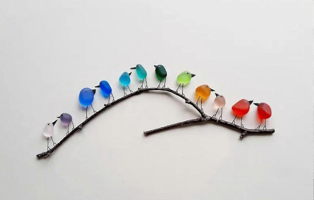Add life and color to your living space with SEA GLASS RAINBOW BIRDS!